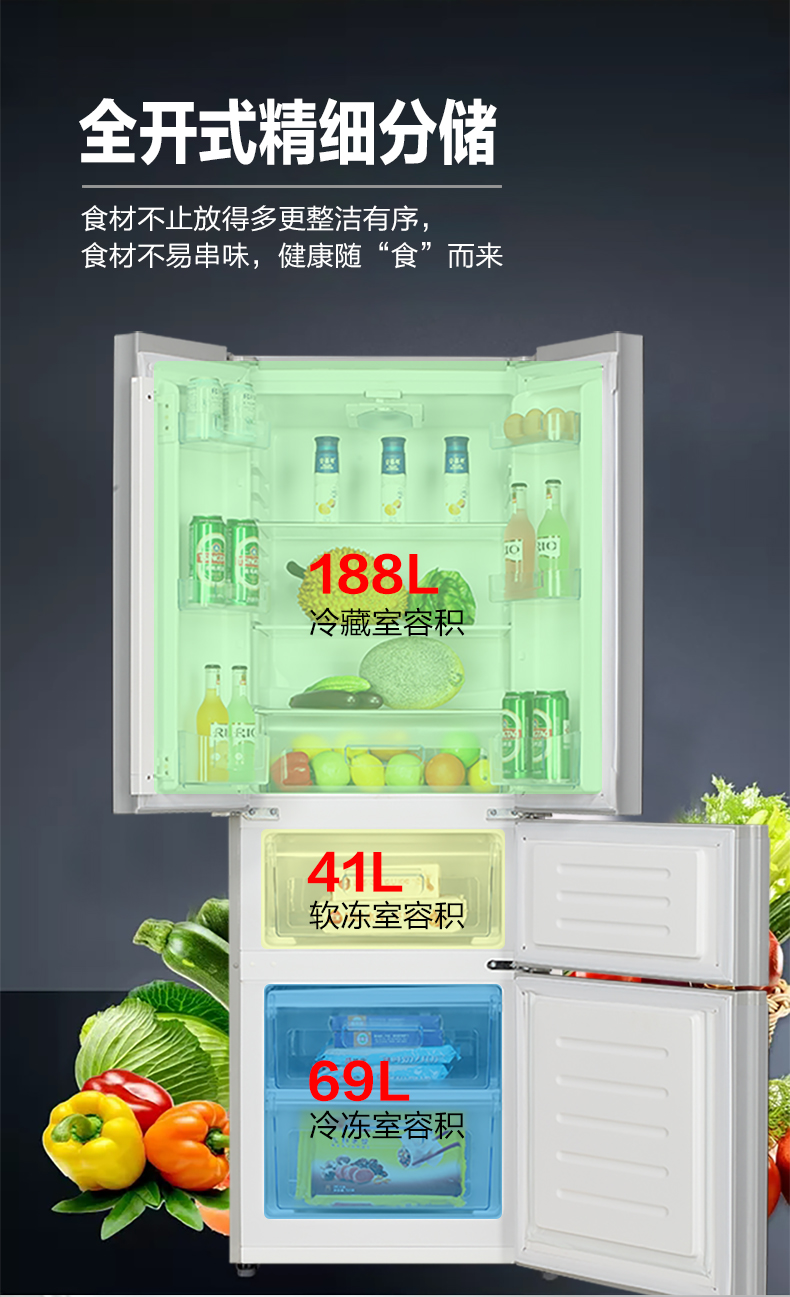 产品描述:韩电288升法式多门冰箱凭借其空间优化、食品保鲜、便利性、时尚外观和节能环保等卖点,成为现代家庭厨房的理想选择。
