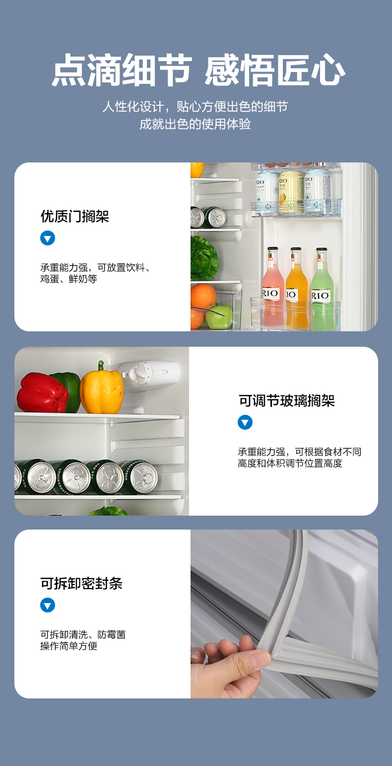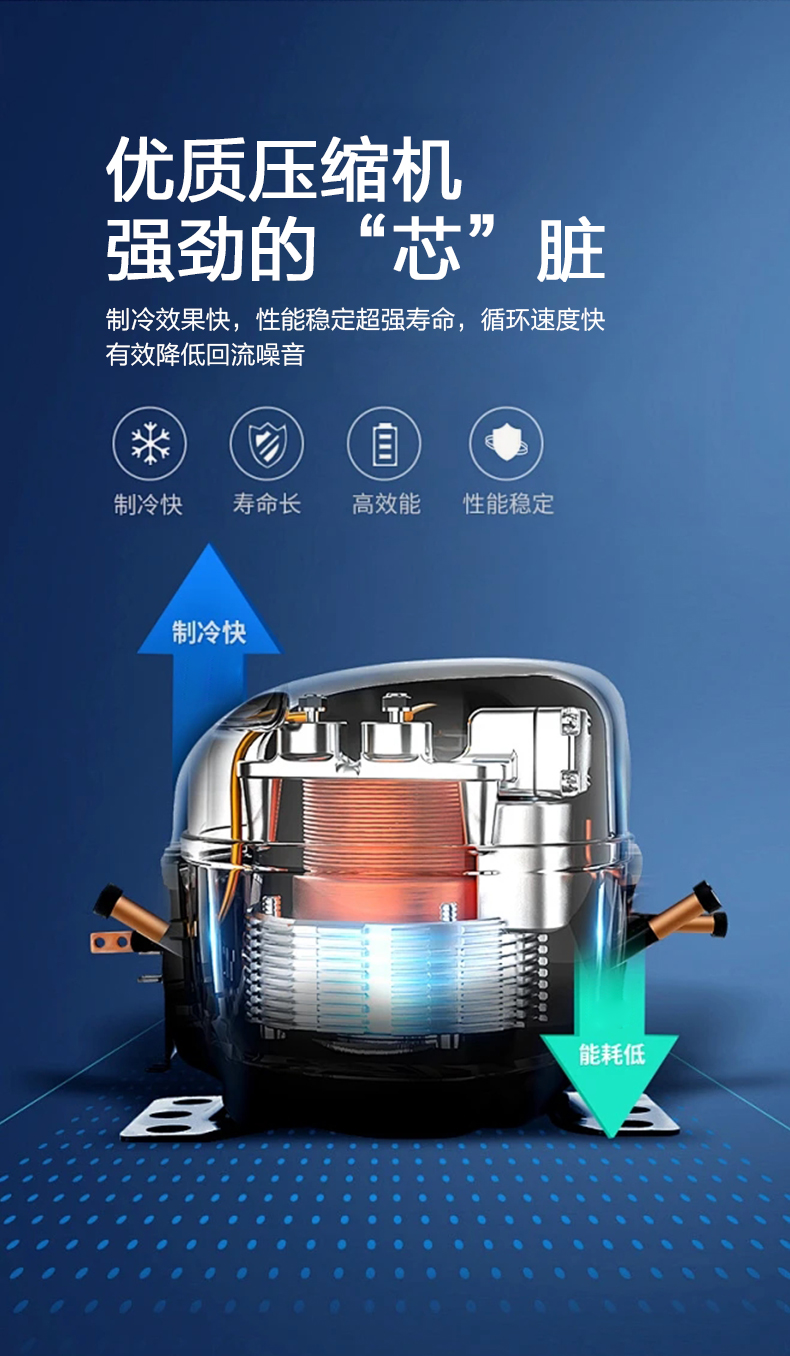 产品描述:这款160升双门冰箱。以其优雅的设计、卓越的性能和实用的功能,成为现代家庭的理想选择。