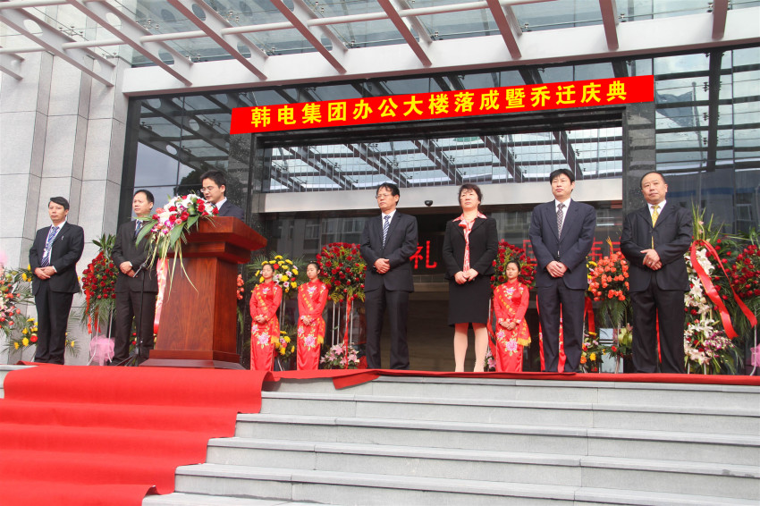 金秋十月,秋高气爽。人们在享受风和日丽的旖旎秋色之余,更多的是在于收获希望。也就是在这个人人憧憬丰收和感受喜悦的日子里,我们迎来了办公楼竣工乔迁的吉日,这是我们韩电人的一大喜事,也是公司发展史上的一个里程碑。25日早上8时,员工们列着整齐的方阵迎接典礼的开始,出席本次庆典的有集团董事长、副董事长、总裁以及4家子公司的总经理等。
