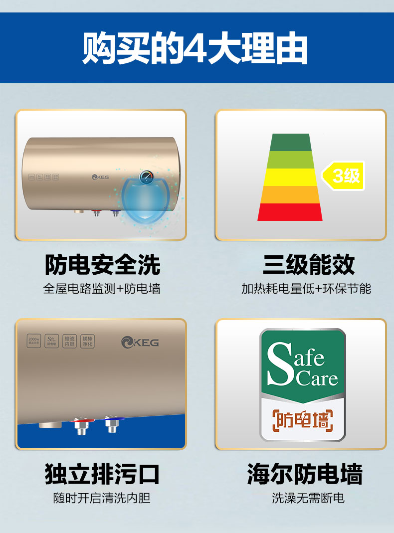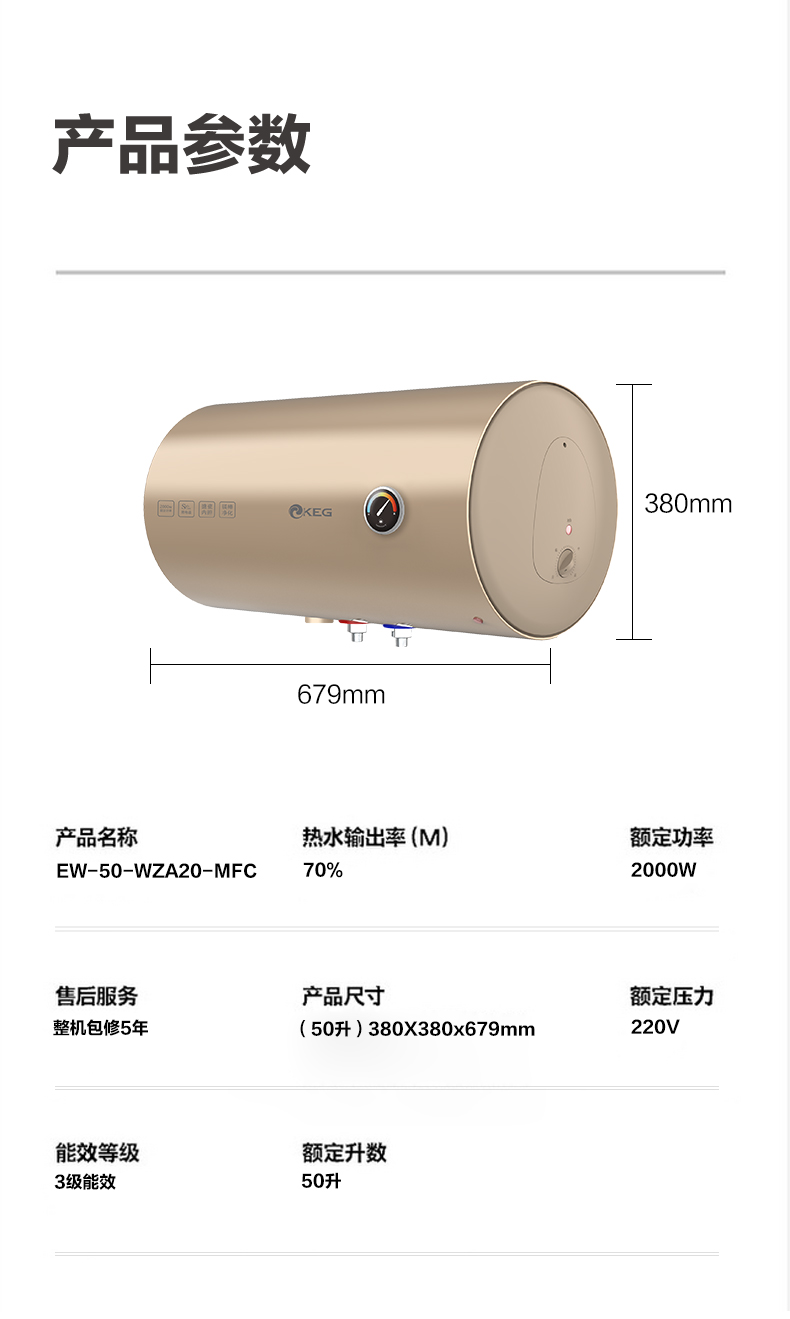 产品描述:韩电50升热水器拥有快速加热功能,让您无需漫长等待即可享受热水;精准控温技术,确保水温稳定舒适;大容量设计满足全家用水需求;高效节能,为您节省电费开支;安全防护系···