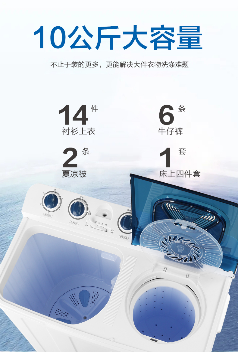 产品描述:韩电10公斤的双桶洗衣机,优势尽显,双桶带来灵活分类洗涤功能,是家庭洗衣的得力助手,满足多样需求。